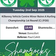Best of luck to the Shamrocks Minors this evening against Danesfort in Danesfort. All su...