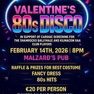 Valentines 80's Disco - Raffle TicketsDraw will take place in Malzards on 14th February at the...